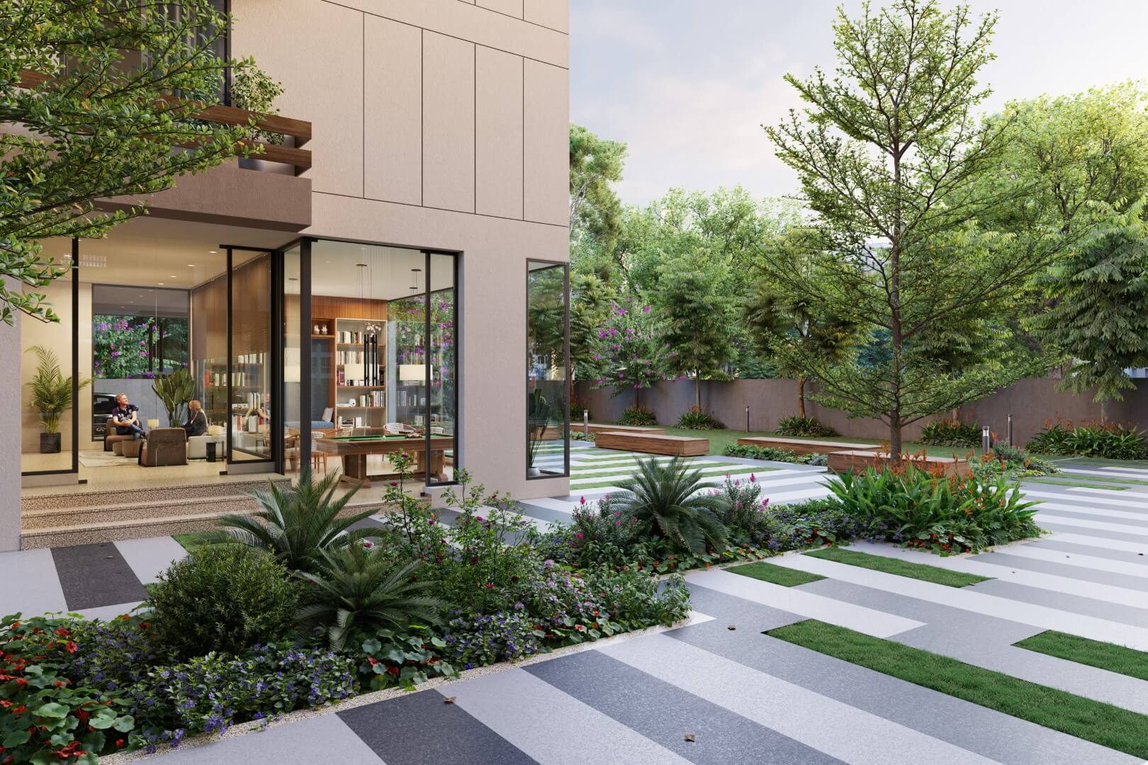 A contemporary structure that captures the spirit of modern architecture with timeless design and distinctive geometry. Spacious balconies and unique fenestrations add depth and elegance, while landscaped passages with lush plantations and patterned flooring enrich the surroundings.